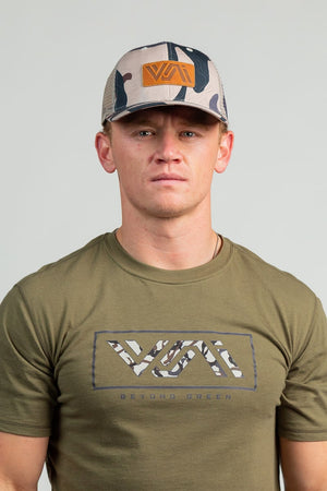 The Highlander Trucker brings that classic trucker style with a stealthy twist—our signature VUNI Camo and a clean leather patch front and center. Made from the same soft, stretchy fabric as our tees, it’s built to feel broken-in from day one.